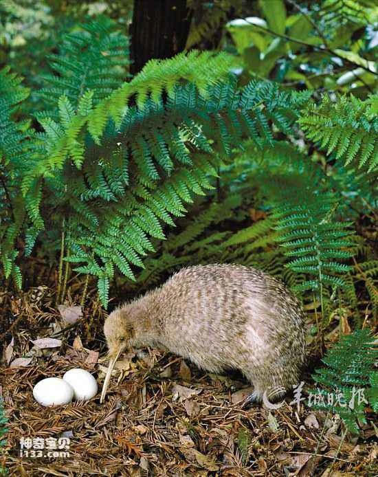 However, the kiwi is not particularly attractive at first glance: its plumage is not as vibrant as a peacock's, and its chirping is far less melodious than a nightingale's song. In fact, the kiwi is the least bird-like of birds, with a short, thick neck and no wings or tail, resembling a pear. Due to the gradual functional degeneration of its wings during evolution, it cannot fly, but its legs are short, thick, and powerful, making it adept at running at speeds up to 19 kilometers per hour. When angered, it often engages in infighting, capable of kicking its companions up to 1.5 meters away.