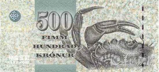 The crab engravings on Faroe Islands banknotes are done in bold lines, especially on the claws, where the lines are thick and deep, creating a strong tactile feel that vividly portrays the powerful and robust nature of this large crab.