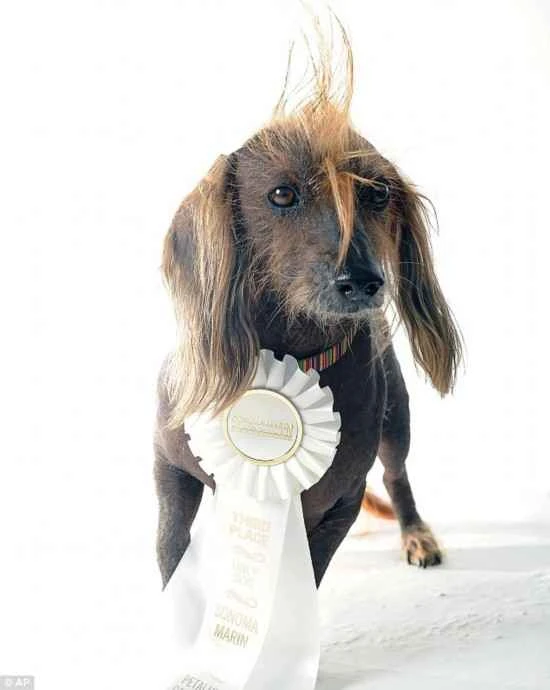 Four-year-old Val has a large head but four short legs like duck feet. Judges described its waddling gait as unforgettable. Its overwhelming advantage in winning the competition lay in its bald body and crested head. Val won a $1,500 prize and will appear on a television network next week.