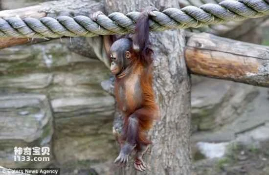 At the Moscow Zoo in Russia, a newborn orangutan, after watching its parents skillfully climb and walk on ropes within its enclosure, decided to muster the courage to try it on its own. Although the newborn orangutan seemed a little nervous at first, it quickly got the hang of it and adapted to walking on the ropes.
