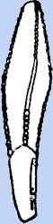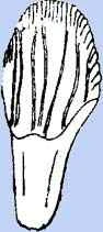 The upper teeth of Iguanodontid dinosaurs had narrower crowns, with rhomboid buccal and lingual surfaces, and were relatively longer than the lower teeth. The buccal surface of the crown had thickened enamel, well-developed marginal denticles, and a large, dominant primary ridge located slightly posterior to the midline of the crown. The rest of the crown was relatively smooth, except for a few small secondary ridges of varying lengths. All these teeth had long, tapering roots.