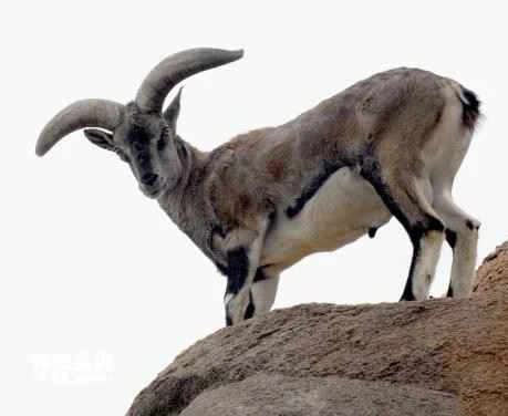 The blue sheep is brownish-gray, sometimes with a slight bluish sheen, which blends well with the surrounding cliffs and rocky cliffs, providing excellent camouflage. Its limbs, abdomen, and face have black, dark gray, and white markings. Both sexes have horns but no beards. The male's horns curve backward and can exceed 60 centimeters in length, while the female's horns are short and straight, reaching a maximum of about 20 centimeters.