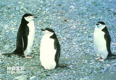 Standing 43-53 cm tall and weighing 4 kg, their most distinctive feature is a black stripe under their neck, resembling a naval officer's cap band, giving them a majestic and resolute appearance. The Soviets called them "Officer Penguins." Their breeding season is in winter. Female penguins lay two eggs at a time, and incubation is shared by both male and female penguins, with the female incubating for the first 10 days. Afterward, the male and female penguins take turns incubating every two to three days. The chicks can swim after two months.