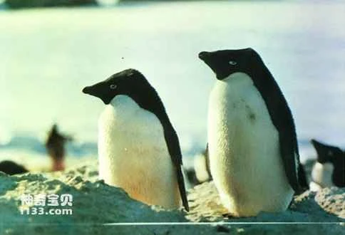 Standing 45-55 cm tall and weighing 4.5 kg, the Adélie penguin has white eye rings, a blue-green head, a black beak with long, fine feathers at the corners of its mouth, short legs, and black claws. Its name comes from Adélie Land in Antarctica, named in 1840 by the French explorer Duval after his wife. Adélie penguins are the most widespread and numerous penguin species. Their breeding season is in the summer. Females lay two eggs at a time, incubating them for about two months. Usually, only one chick survives, and the chicks can swim at about two months old.