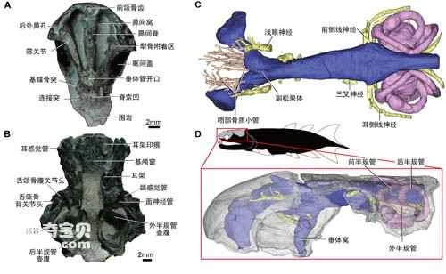 So far, only the skull of the *Qingmenodon* has been discovered. When it was alive 410 million years ago, it was approximately 15 cm in length. Its distinctive clawed-tooth features, such as whorls, indicate that although small in size, it was a ferocious predator. Even more excitingly, it preserves a complete set of important brain and cranial morphological information missing from clawed-tooth fossils in Australia, including the brain cavity, inner ear, nerves, and vascular pathways. This provides crucial evidence for studying the early evolutionary history of clawed-tooth fishes and even the entire lobe-finned fish species.