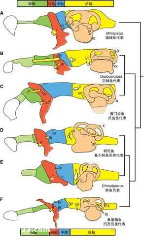 Figure 3. Schematic diagram comparing the brain cavities of major groups of Devonian bony fishes (Image provided by Lu Jing)