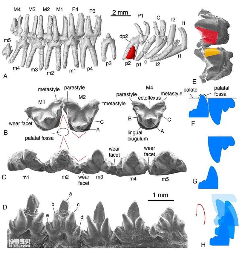Figure 2. Tooth morphology, wear details, and occlusal movement relationships of *Origolestes lii* (Image provided by Mao Fangyuan)