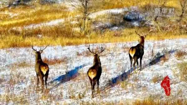 Recently, herds of red deer have appeared in the Baiyinxile National Grassland Nature Reserve in Xilingol League, Inner Mongolia Autonomous Region. They are seen either foraging with their heads down or running in groups into the depths of the grassland, adding vitality to the cold winter.