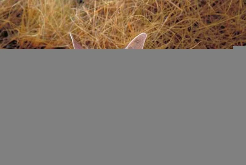 The bimbill is the smallest marsupial in the world. It measures 55 cm in body length and 23 cm in tail length, weighing 0.8-2.5 kg. It has a slender body. Its large, rabbit-like ears give it its name. It has a long, pink, hairless, and robust snout. Its slender hind legs resemble those of a kangaroo. Its fur is soft and long. Its back is grayish-blue, and its belly is white. Its long tail is gray and black with a white tip. They are skilled diggers, living in burrows to avoid predators such as wild dogs and foxes. They avoid foraging during the day, often hunting at night. They are solitary animals, with males larger than females, and they only congregate once a year during the mating season.