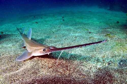 Sawfish belong to the cartilaginous fish family, ranging in length from 5.4 to 7.6 meters, with a maximum length reaching 9 meters and a weight exceeding 500 kilograms. Their upper lip gradually elongates and flattens, developing 21-35 pairs of sharp rostrum teeth on each side; their "saw" can reach up to 2 meters in length and 30 centimeters in width. The snout is flat and narrow, protruding in a sword-like shape, with hard rostrum teeth along the edges. They lack a nasal groove and have five gill openings, located ventrally inside the base of the pectoral fins. They have two dorsal fins without spines; the anterior edge of the pectoral fins extends to the posterior side of their head; the tail is thick with a well-developed caudal fin; the odd and even fins are radially arranged. The posterior end of the cartilaginous fin has numerous horny fin rays.