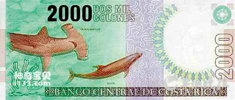 Costa Rica is bordered by the Caribbean Sea to the east and the Pacific Ocean to the west. Although its area is only over 50,000 square kilometers, it has a coastline of 1,200 kilometers, making it a typical country inseparable from the sea. The 2011 edition of the 2000 colon banknote features a portrait of a Costa Rican politician on the front, while the back showcases a collective display of some of the country's most important marine animals, including sharks, corals, starfish, sea fish, and sea turtles.