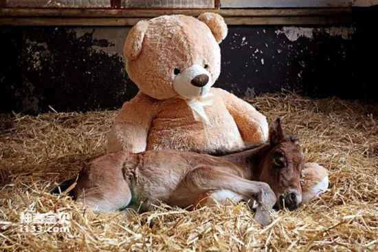 A foal born in Devon, England, on a hillside in a national park was abandoned by its mother shortly after birth. With the help of staff, the foal recovered and has taken a toy teddy bear as its "mother," remaining inseparable from it.