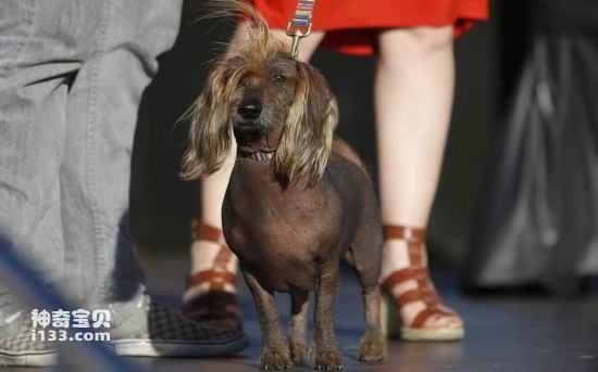 Four-year-old Val has a large head but four short legs like duck feet. Judges described its waddling gait as unforgettable. Its overwhelming advantage in winning the competition lay in its bald body and crested head. Val won a $1,500 prize and will appear on a television network next week.