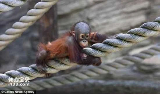 At the Moscow Zoo in Russia, a newborn orangutan, after watching its parents skillfully climb and walk on ropes within its enclosure, decided to muster the courage to try it on its own. Although the newborn orangutan seemed a little nervous at first, it quickly got the hang of it and adapted to walking on the ropes.