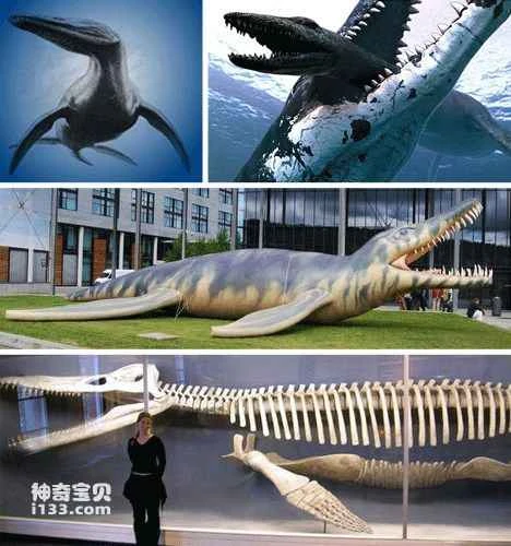 Pliosaurus once inhabited the oceans, possessing immense strength and terrifying speed that gave them astonishing attack capabilities. With short necks but enormous jaws, they were highly efficient killing machines. Based on the largest pliosaurus skeleton fossil discovered to date, this animal could reach an incredible length of 52 feet (approximately 15.84 meters), with its head alone measuring nearly 8 feet (approximately 2.43 meters).