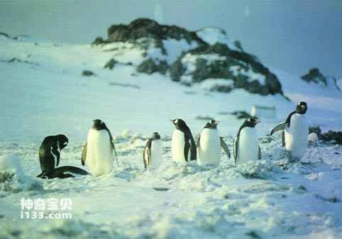Standing 43-53 cm tall and weighing 4 kg, their most distinctive feature is a black stripe under their neck, resembling a naval officer's cap band, giving them a majestic and resolute appearance. The Soviets called them "Officer Penguins." Their breeding season is in winter. Female penguins lay two eggs at a time, and incubation is shared by both male and female penguins, with the female incubating for the first 10 days. Afterward, the male and female penguins take turns incubating every two to three days. The chicks can swim after two months.