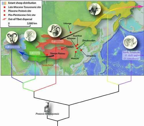 The ancestors of the argali sheep on the Tibetan Plateau shared the same distribution range as modern argali sheep. During the Pliocene, they had adapted to the cold, high-altitude environment, while other regions, including the high-latitude Arctic Circle, experienced warmer climates. This ancestral group rapidly evolved to resemble modern argali sheep, gaining a competitive advantage in the frozen environment during the Quaternary Ice Age approximately 2.6 million years ago, and thus quickly spread to the areas surrounding the Tibetan Plateau and beyond. Most argali sheep species survived along their Pleistocene dispersal routes, resulting in a highly consistent zoogeographical pattern.